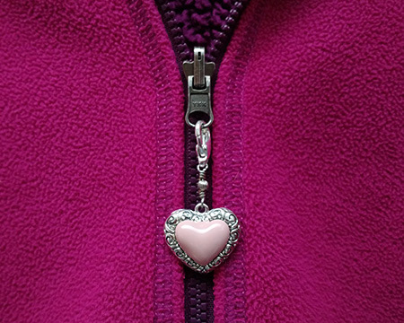 Pink heart zipper pull