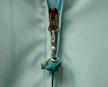 Blue fish zipper pull